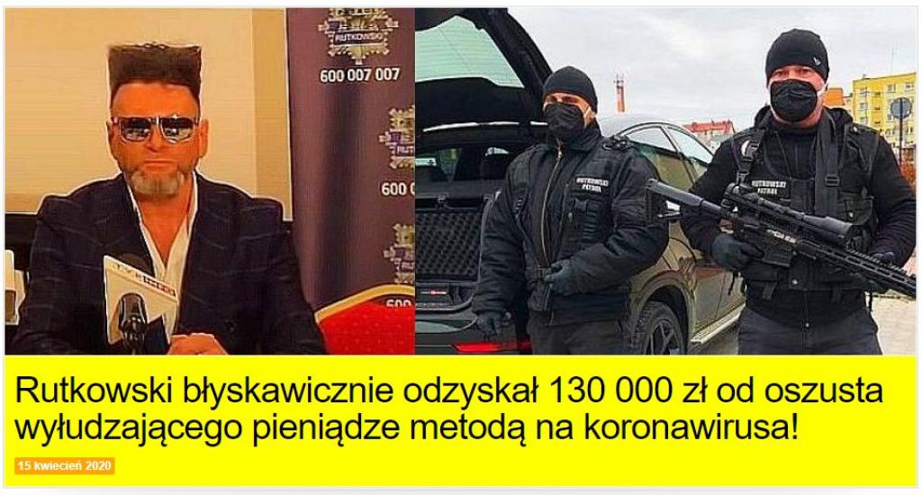 Wczoraj opisaliśmy blyskawiczną akcję Krzysztofa Rutkowskiego w Katowicach. Jej efektem był natychmiastowy przelew 130 000 zł wykonany przez oszusta na konto poszkodowanego medyka z Warszawy. Nie mógł on ich odzyskać od miesiąca. Czyli od chwili, kiedy po wybuchu epidemii zapłacił oszustowi za transport rzekomych maseczek, których w rzeczywistości nie było!