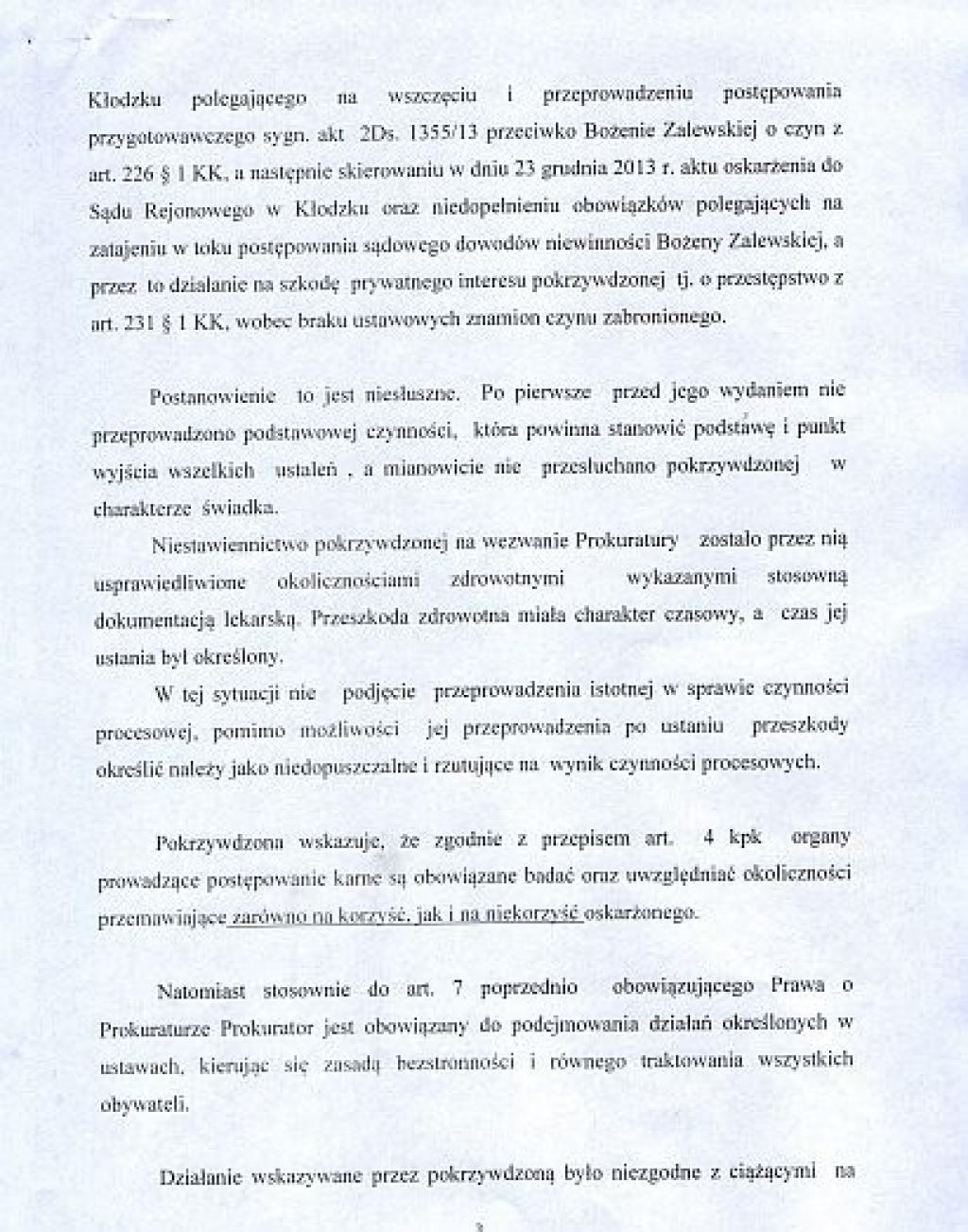 Bożena Zalewska: Prokurator Małgorzata Sałacka dała się okłamywać przez policjantów, zaniedbała obowiązki nie przesłuchując mnie ani nie konfrontując z funkcjonariuszami. Przespała rozprawy i jest bezkarna!