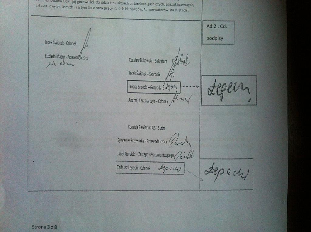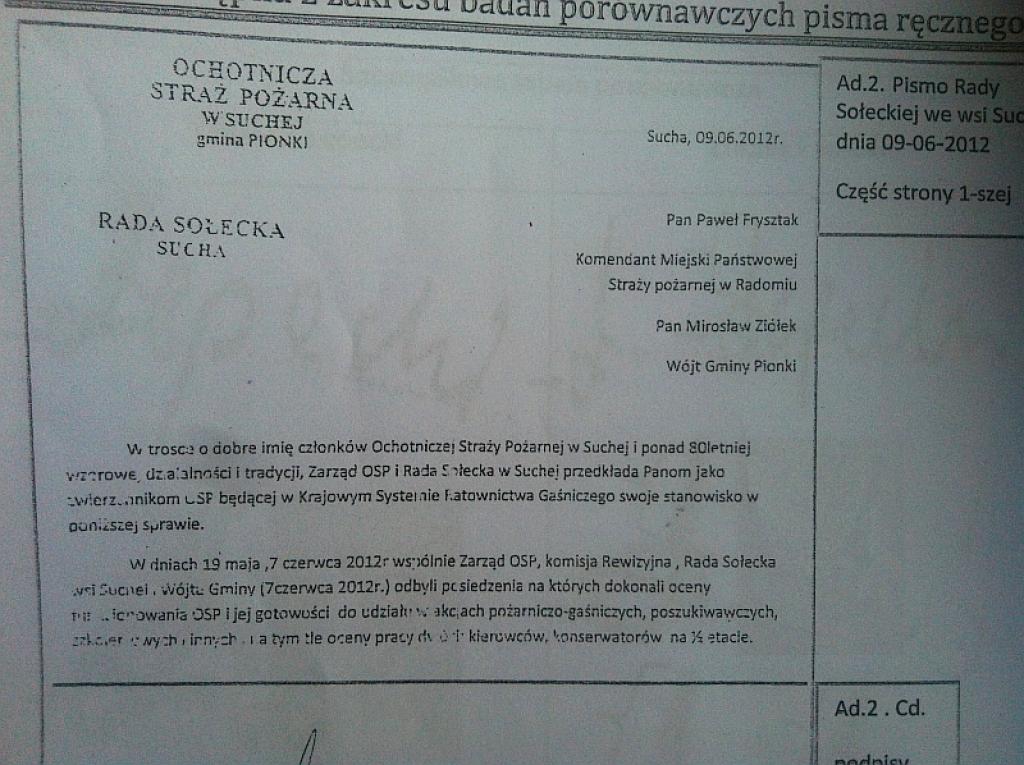 Te analizy do prokuratury w Zwoleniu dostarczył podoficer Straży Pożarnej Radosław Białek. Od kilku lat domaga się sprawiedliwości, bo na podstawie tych podpisów został zwolniony z pracy w Urzędzie Gminy w Pionkach oraz oczerniony i szkalowany w szeregach Państwowej Straży Pożarnej.