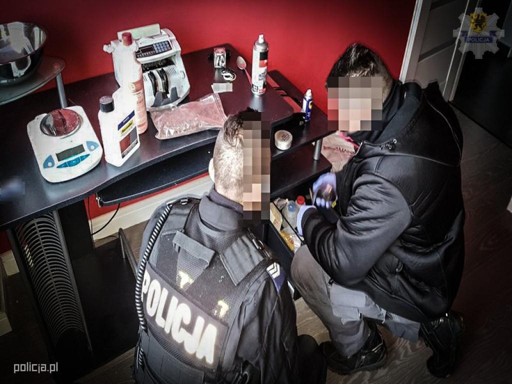 Kryminalni ze Śródmieścia i Komendy Miejskiej Policji w Gdańsku przy wsparciu policyjnych antyterrorystów zatrzymali 25-letniego mężczyznę, który na szeroką skalę handlował dopalaczami. Do przestępczego procederu zaangażował również swoją matkę. W trakcie przeszukania mieszkań i siedziby jego firmy policjanci znaleźli i zabezpieczyli m.in. kilkaset opakowań różnych substancji, dwie jednostki broni z amunicją i kominiarki.