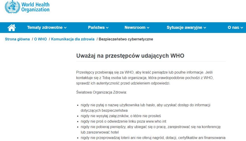 Aby otworzyć taką stronę, odbiorcy proszeni są o zalogowanie się przy użyciu swojego adresu e-mail i hasła. W ten sposób przestępcy mogą instalować złośliwe oprogramowanie na urządzeniu odbiorcy i kraść pieniądze lub poufne informacje. Takie listy i wiadomości e-mail sugerują, że zostały wysłane przez znane organizacje, takie jak Światowa Organizacja Zdrowia (WHO).