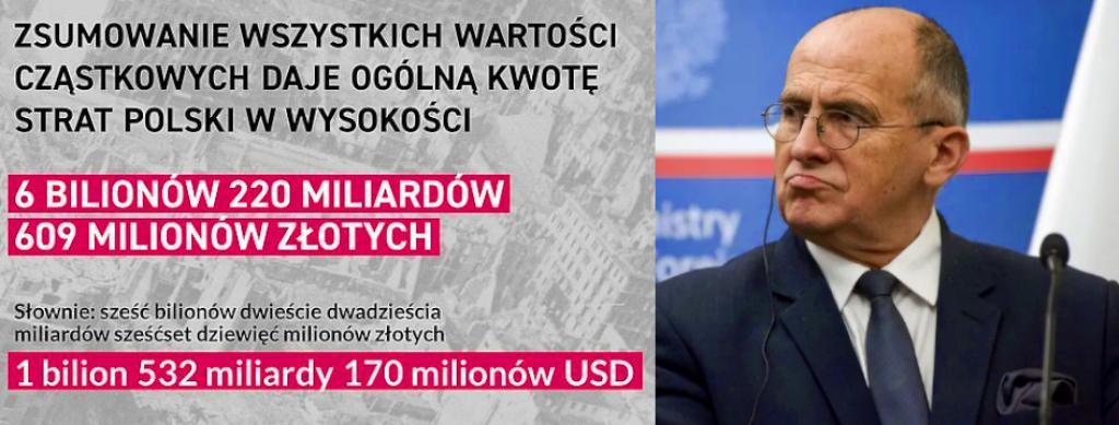 - Odszkodowania za straty materialne i niematerialne w wysokości 6 bilionów 220 miliardów 609 milionów złotych;