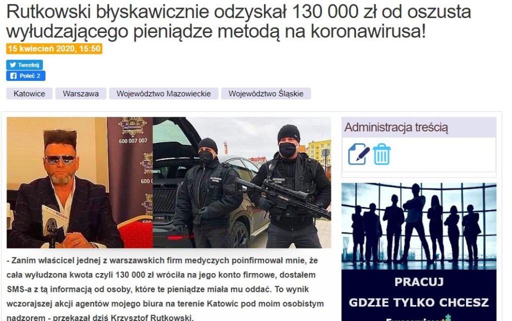Przypomnijmy, że to już kolejna skuteczna akcja Krzystzofa Rutkowskiego na rzecz polskiego biznesu w czasie epidemii. O akcjach odzyskania 130 tysiecy złotych oraz 3 milionów złotych możesz przeczytać pod linkami: