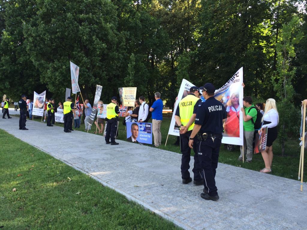 The protest appeals were handed out by the Editor in Chief of Patriot24.net and the distressed American mother Amy Jacobsen, along with Krzysztof Rutkowski, who conducted many daring operations in Norway, freeing the children.