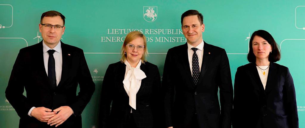 Minister klimatu i środowiska Anna Moskwa wraz z wiceministrem aktywów państwowych Maciejem Małeckim, 5 kwietnia 2022 r. w Wilnie, uczestniczyli w spotkaniu z ministrem energetyki Republiki Litewskiej Dainiusem Kreivysem.
