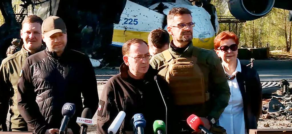 Minister Mariusz Kamiński w Hostomlu: Ta wojna to walka dobra ze złem. Wizyta ministrów spraw wewnętrznych Polski, Litwy, Łotwy i Estonii w Ukrainie