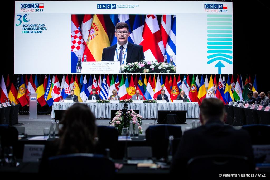 Przewodniczący OBWE, minister Zbigniew Rau, podkreślił, że w ostatnich miesiącach widzieliśmy destabilizujący wpływ rosyjskiej agresji na gospodarkę światową i zwiększone ryzyko, jakie ona niesie dla środowiska. - W wyniku rosyjskiej agresji na Ukrainę rynki finansowe, w tym obszaru OBWE, które jeszcze w pełni nie wyszły z pandemii, są zagrożone kolejnymi wstrząsami gospodarczymi. Perspektywy gospodarcze i środowiskowe dla Ukrainy są tragiczne i prawdopodobnie jeszcze się pogorszą. Zanieczyszczenie ziemi, wody i powietrza spowodowane bezprawną działalnością wojskową stanowi bezpośrednie zagrożenie dla zdrowia obywateli. Im dłużej trwa ta straszna sytuacja, tym większy wpływ na przyszłe pokolenia. Dotyczy to zarówno krajów sąsiednich, jak i całego świata. – wskazywał szef polskiej dyplomacji.