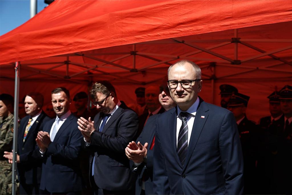 Podsekretarz stanu w MSWiA podczas uroczystości w Ełku podziękował strażakom PSP i druhom OSP za ich służbę oraz poświęcenie.