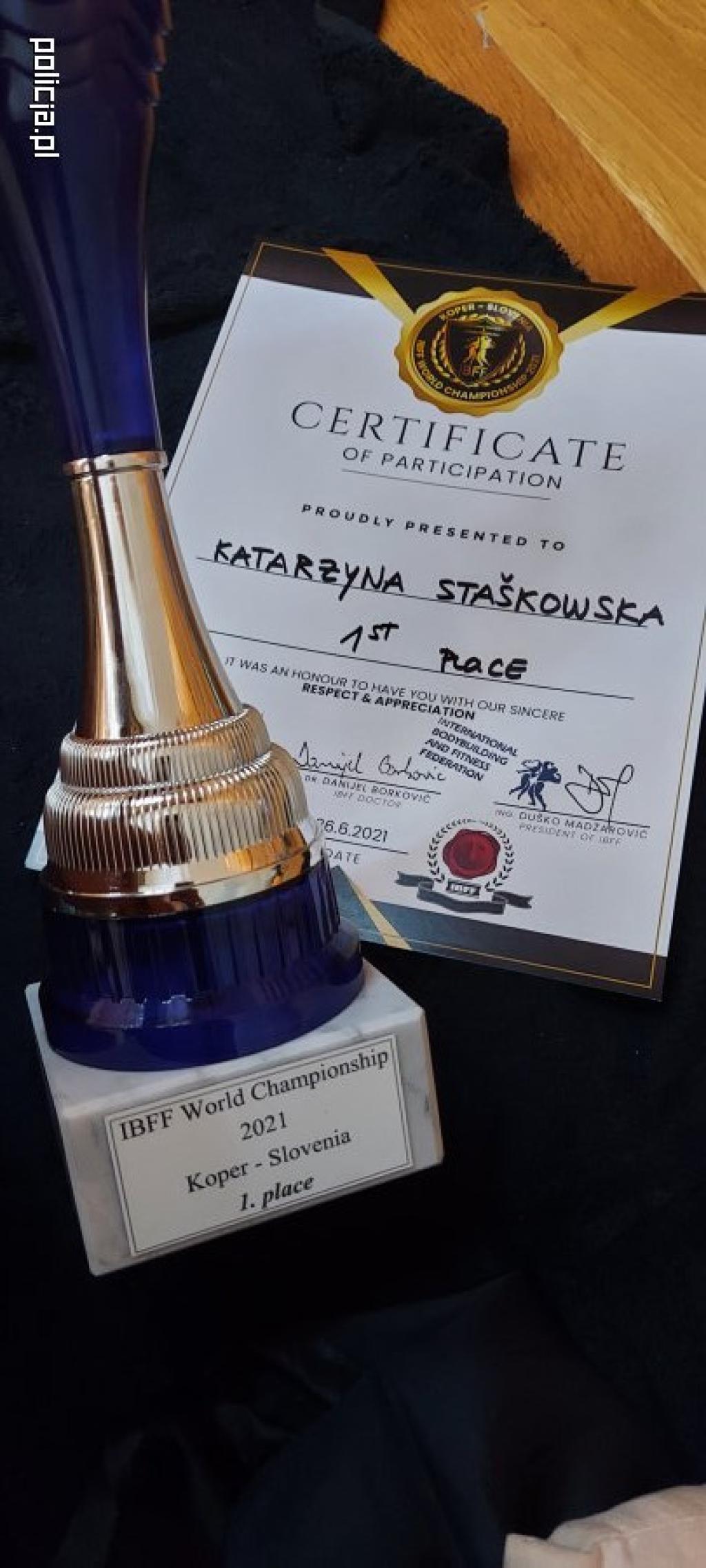 Katarzyna Staśkowska z Komendy Powiatowej Policji w Łasku zdobyła złoty medal w kategorii fitness, w kategorii figur zajęła IV miejsce. Największym osiągnięciem było zdobycie tytułu Overall kobiet dla najlepszej z najlepszych wśród wszystkich zawodniczek świata tej federacji.