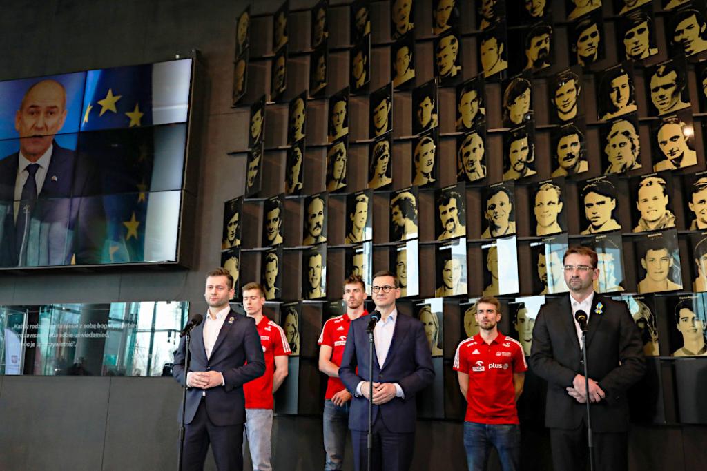 – Gospodarzami tegorocznych mistrzostw świata w siatkówce mężczyzn miała być Rosja. Ale czy wyobrażacie sobie Państwo taką sytuację, że wszyscy jak gdyby nigdy nic słuchają hymnu rosyjskiego? Kibice na trybunach skandują Rasija, Rasija? Wszyscy się temu przypatrują tak, jakby się nic nie działo w czasie, kiedy wojska rosyjskie dokonują rzezi na ukraińskich cywilach? Zdecydowanie nie. Zdecydowanie byłoby to coś niewłaściwego – podkreślił premier Mateusz Morawiecki.