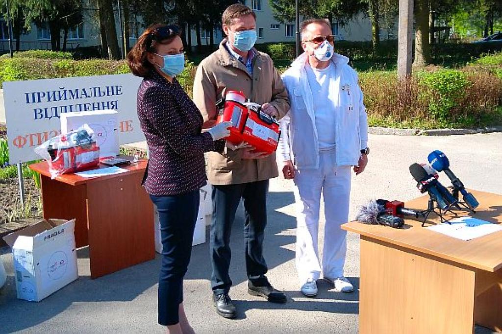 W czasie konferencji prasowej z udziałem Przewodniczącego Lwowskiej Obwodowej Administracji Państwowej Maksyma Kozyckiego i dyrektora szpitala Liubomyra Raka, Konsul E. Dzwonkiewicz przekazała Centrum 3 ssaki medyczne, które pomogą w leczeniu chorych na COVID-19.
