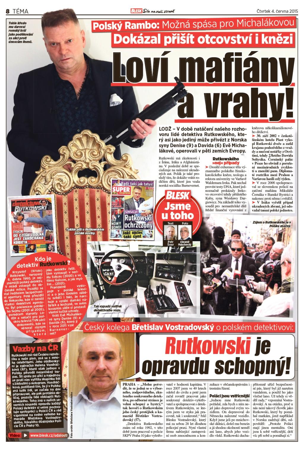 Krzysztof Rutkowski został uznany przez czeskie media jedyną nadzieją na uwolnienie dzieci zabranych przez norweskie służby socjalne. W konsekwencji licznych publikacji interwencję w Norwegii podjął osobiście Prezydent Czech - Miloš Zeman.