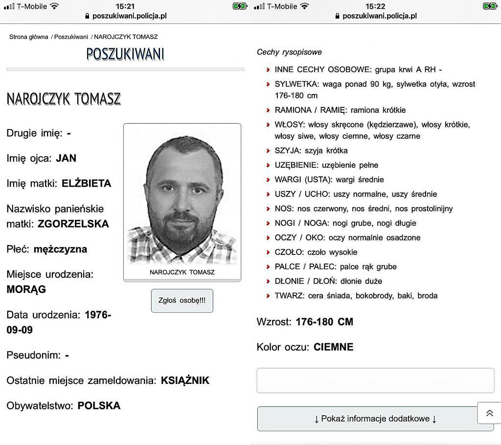 Każdy kto posiada informacje o miejscu ukrywania się Tomasza Narojczyka proszony jest o natychmiastowy kontakt pod numer nasz numer alarmowy +48 600 007 007 - apeluje Krzysztof Rutkowski.