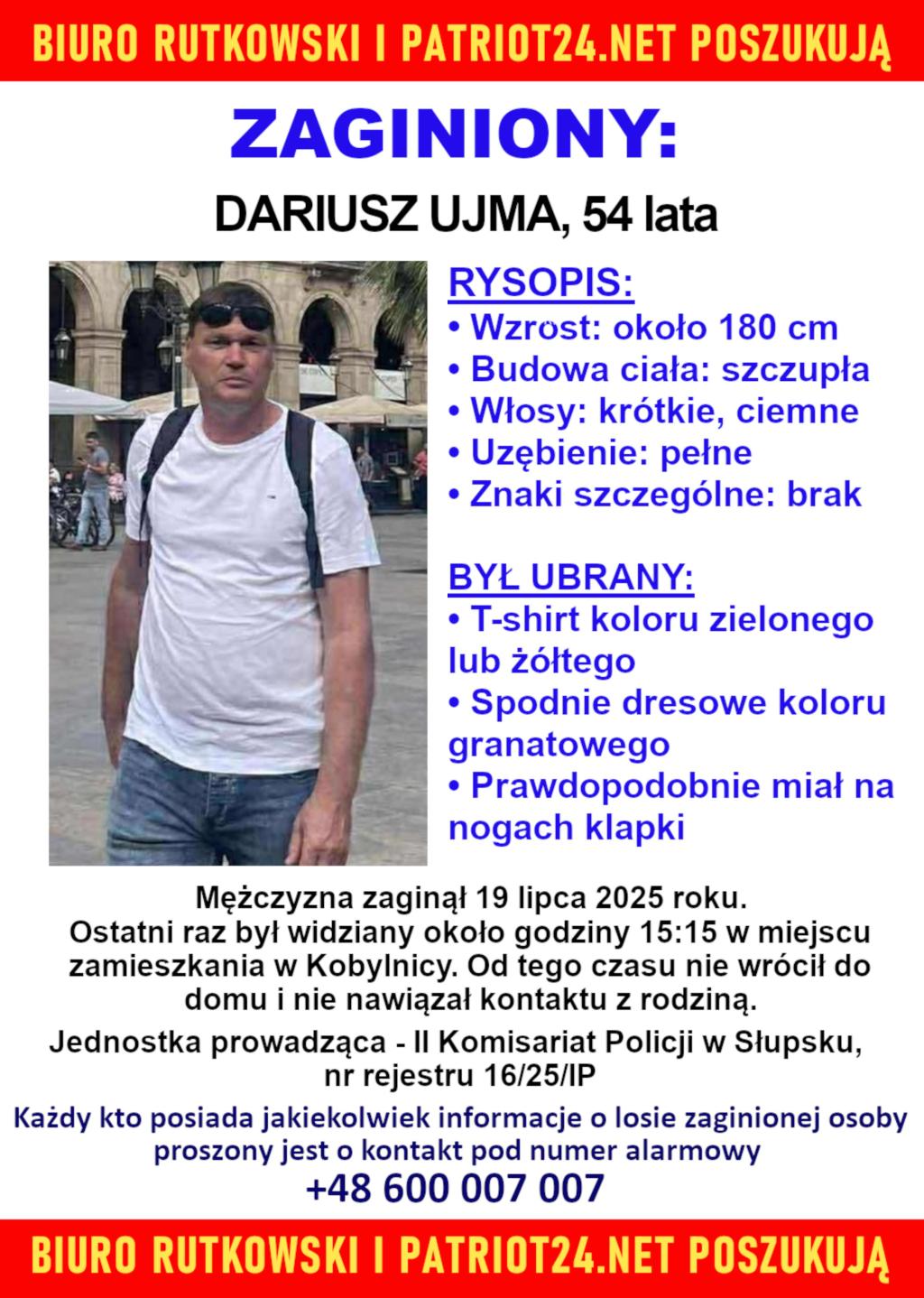 Szczegóły tajemniczego zaginięcia Dariusza Ujmy przedstawi Krzysztof Rutkowski wraz z członkiem rodziny zaginionego podczas briefingu, który odbędzie się w niedzielę, 27 lipca 2025 roku, o godzinie 14:30, na parkingu przy Komendzie Miejskiej Policji w Słupsku, Al. 3 Maja 1.