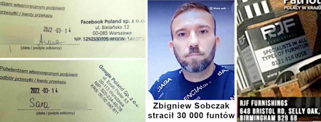 Zbigniew Sobczak od niemal dwóch miesięcy czeka na stanowisko obu koncernów. Poprosił by zablokowali firmę RJF FURNISHINGS z Birmingham, która oszukała go na 30 000 funtów. Ale Facebook i Google nadal promują przestępcę a poszkodowanego lekceważą!