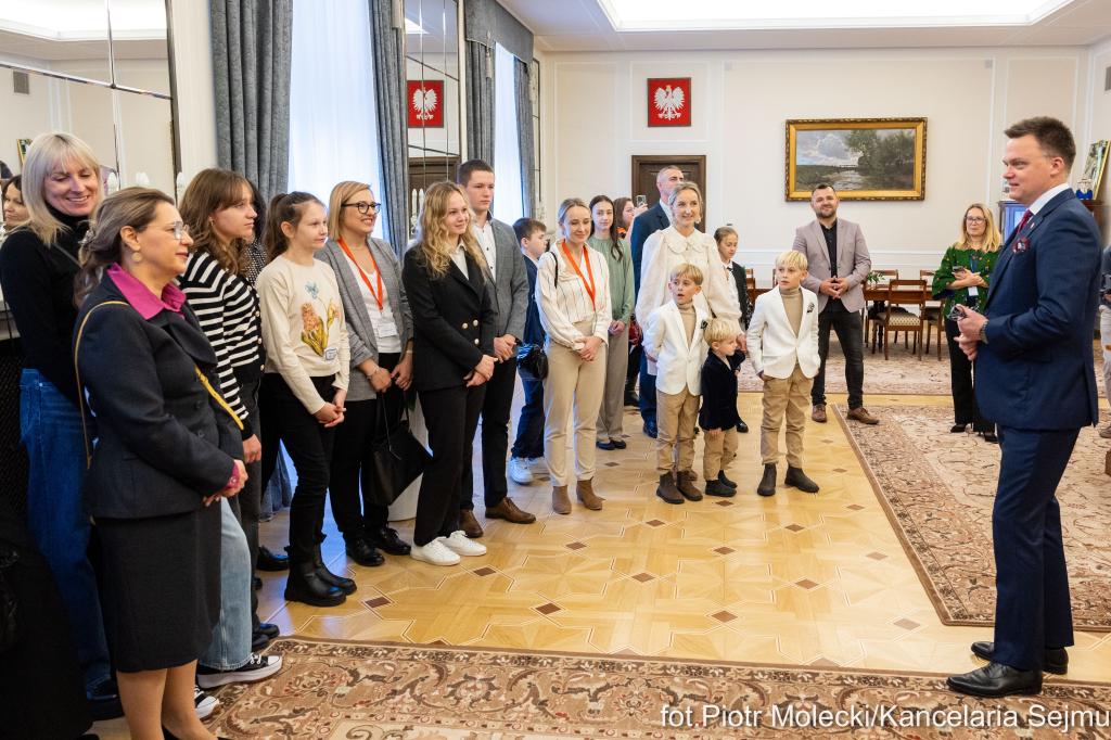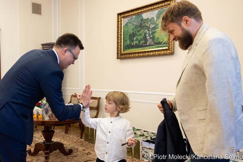 Przed otwarciem wystawy marszałek Hołownia przyjął w swoim gabinecie podopiecznych Fundacji Dorastaj z Nami. Pomaga ona dzieciom, których rodzice zginęli bądź zostali poszkodowani na służbie.