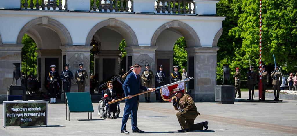 W poniedziałek, 9 maja br. szef MON podziękował i wyróżnił okolicznościowymi medalami przedstawicieli wojskowej służby zdrowia - żołnierzy i pracowników cywilnych za ich zaangażowanie w pracę w czasie pandemii. Podczas uroczystości, która odbyła się na Palcu Marszałka Piłsudskiego w Warszawie odbyła się także ceremonia wręczenia sztandaru Wojskowemu Ośrodkowi Medycyny Prewencyjnej w Modlinie.