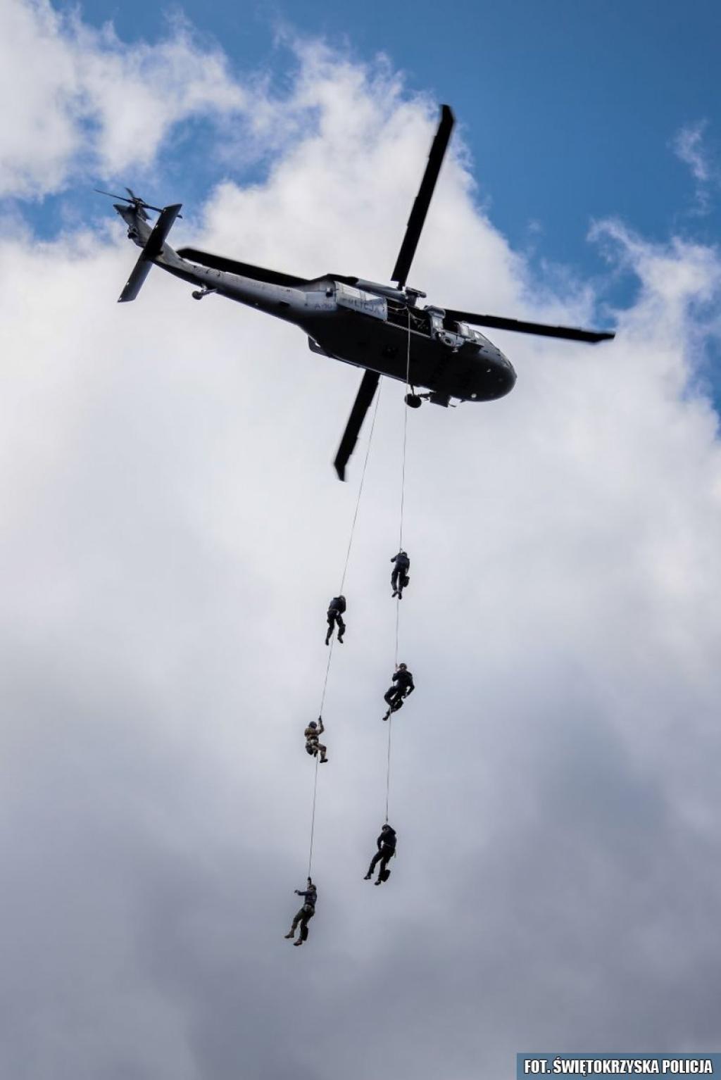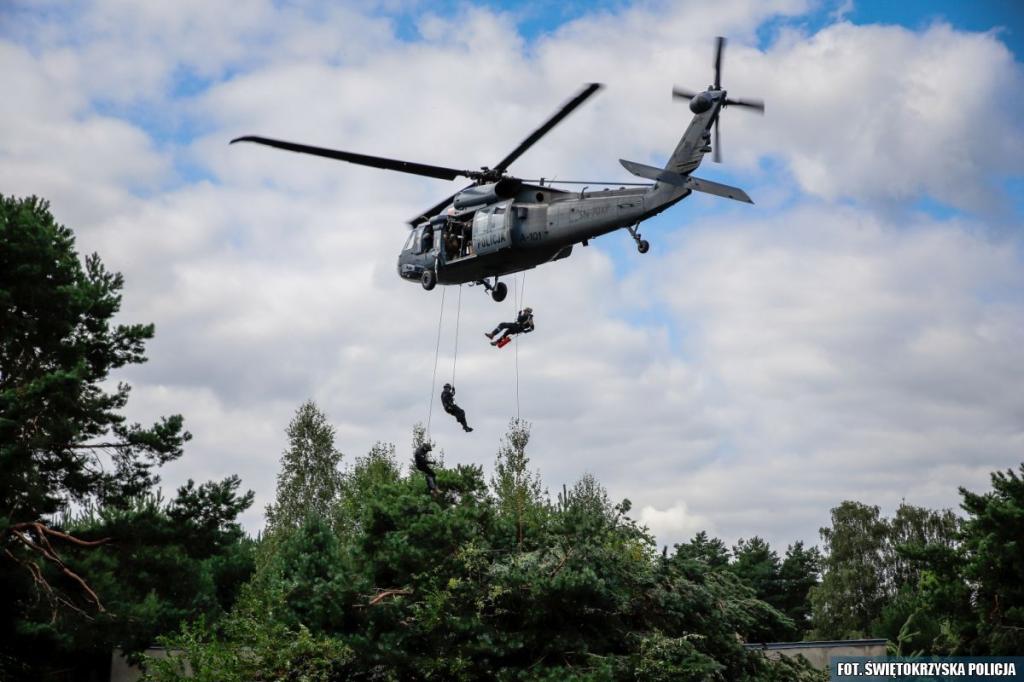 Samodzielny Pododdział Kontrterrorystyczny Policji w Kielce utrzymywany jest w ciągłej gotowości bojowej. Dlatego policyjni komandosi doskonalą swoje umiejętności i regularnie uczestniczą w różnego rodzaju szkoleniach. Po kilku dniach na śmigłowcu Black Hawk, podkreślili swoją wszechstronność i gotowość do podjęcia najtrudniejszych zadań.