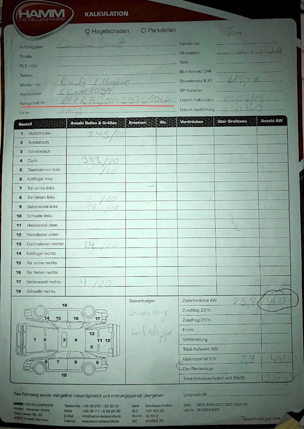 W rozmowie z Telewizja.Patriot24.net Aleksander Hamm przekazał, że nie zapłacił Polakowi, bo on po południu remontował samochody po gradobiciu dla innej firmy. Zdenerwował się, bo mógł stracić kontrakt na 1 000 000 €.
