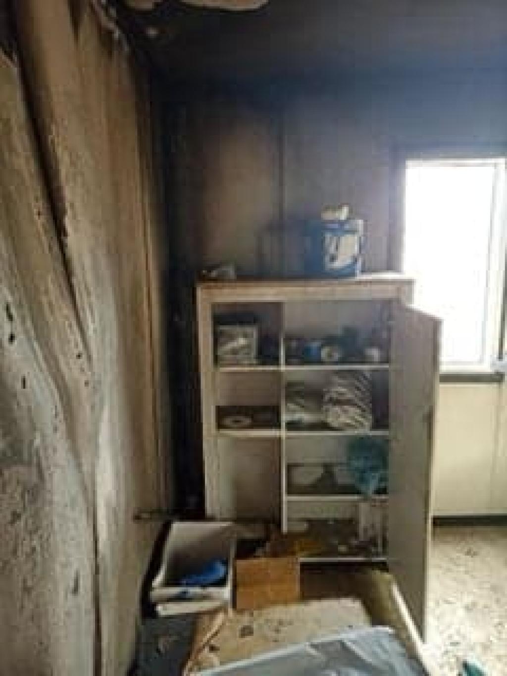 Prezentujemy zdjęcia wykonane dziś na miejscu zdarzenia. Widzimy spaloną ścianę pawilonu oraz wnętrze. Całość nie nadaje się już do użytku.