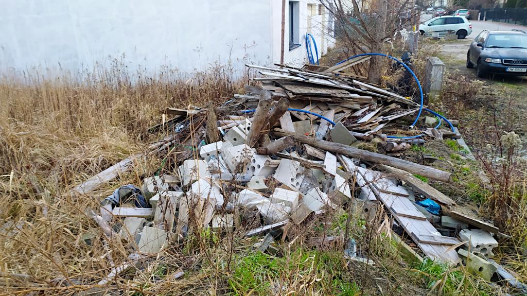 Właściciel, do którego się dodzwoniliśmy tydzień temu, lekceważy problem. Nie dostrzega zagrożenia ani pożarowego, ani środowiskowego ani niebezpieczeństwo dla bawiących się tu betonowymi bloczkami dzieci.