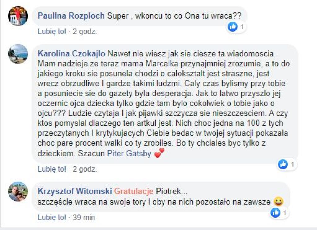 - A tych znajomych, którzy mu tak kibicują zachęcam by oddali Piotrowi swoje dzieci mając na uwadze, że pozostawia swoje pod opieką osoby z orzeczeniem o chorobie psychicznej. Może wtedy odczują o jakim dramacie piszemy - dodaje nasz Redaktor Naczelny.