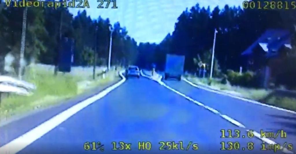 Popełnione przez kierowcę wykroczenia drogowe zarejestrował policyjny wideorejestrator.