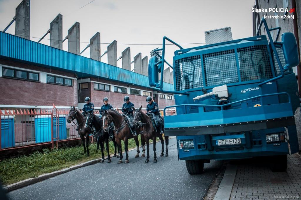 W Jastrzębiu-Zdroju rozegrany został mecz piłki nożnej pomiędzy drużynami GKS 1962 Jastrzębie, a Zagłębie Sosnowiec. Na trybunach zasiadło blisko 1400 osób. Nad bezpieczeństwem mieszkańców i kibiców czuwało około 90 policjantów z jastrzębskiej komendy, katowickiego oddziału prewencji i bielskiego pododdziału prewencji. Wśród mundurowych byli przewodnicy psów służbowych, stróże prawa obsługujący armatkę wodną oraz policja konna.