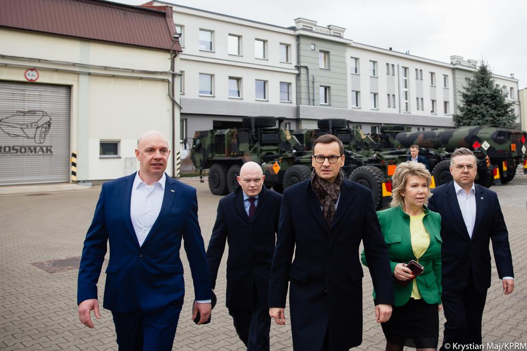 Premier Mateusz Morawiecki odwiedził Zakłady Rosomak S.A. w Siemianowicach Śląskich. Podczas swojej wizyty mówił o tym, że znaleźliśmy się w trudnych czasach. Ukraina od ponad roku walczy o wolność swoją, ale również naszą – Polski i całej Unii Europejskiej. Bezpieczeństwo i rozwój wojskowości jest kluczowe. Przekazujemy rekordowe środki na uzbrojenie – do 4% PKB. W Polsce mamy zakłady produkujące sprzęt wojskowy, który jest nowoczesny i spełnia najwyższe standardy. Szef rządu zapowiedział, że sprzedamy Ukrainie 100 naszych pojazdów bojowych Rosomak.