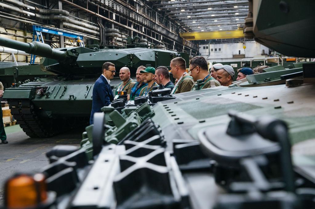 – Tutaj będzie centrum serwisowania, centrum napraw dla czołgów Leopard. Już tutaj jest kawałek linii produkcyjnej, montażowej, serwisowej właśnie czołgów Leopard – powiedział premier Mateusz Morawiecki.