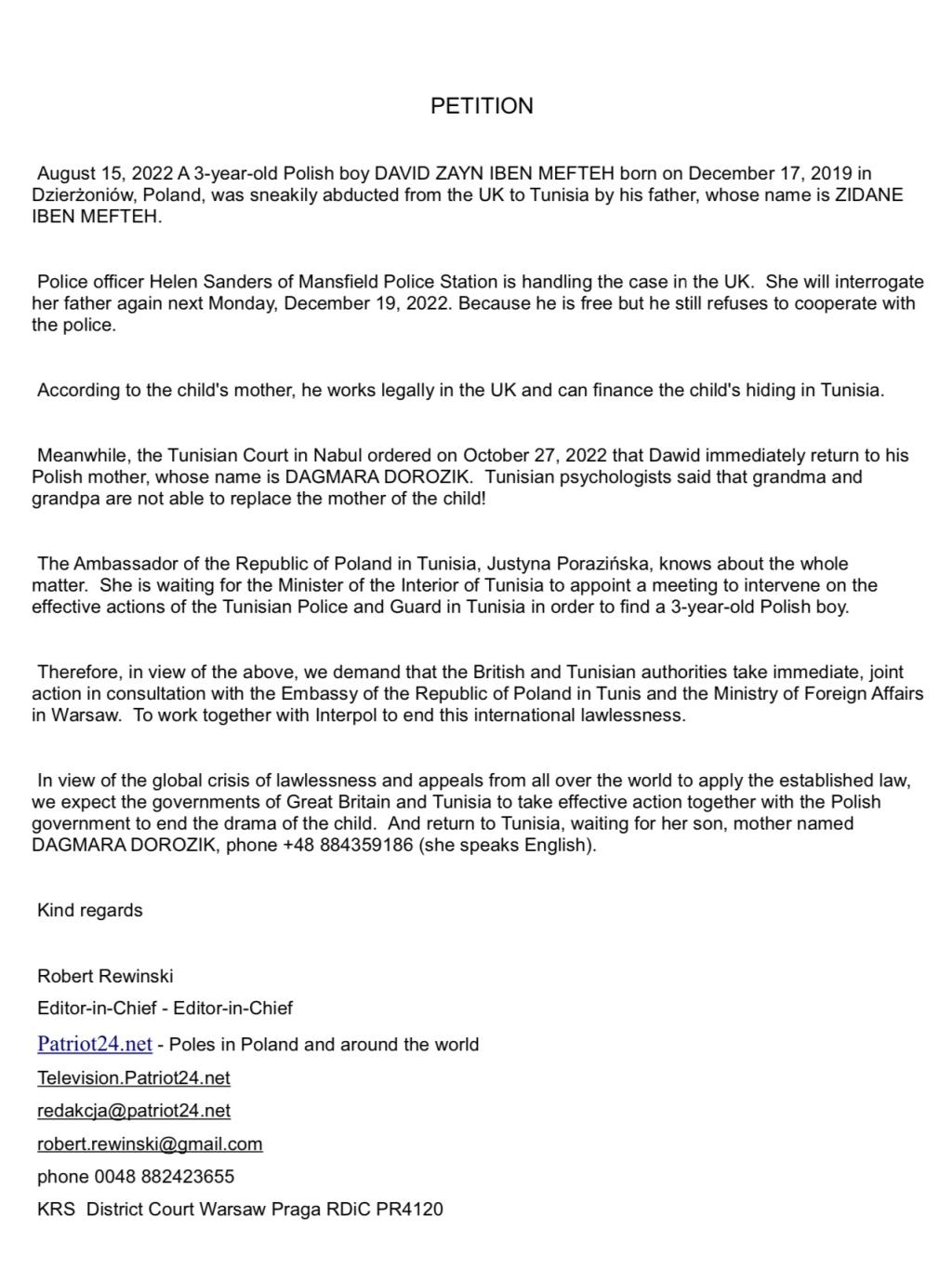 We present a video recording of today's demonstration at the British Embassy in Warsaw. Will the British government, the police and King Charles III, in cooperation with Interpol, recover the Polish child abducted on August 15, 2022 from England to Tunisia?