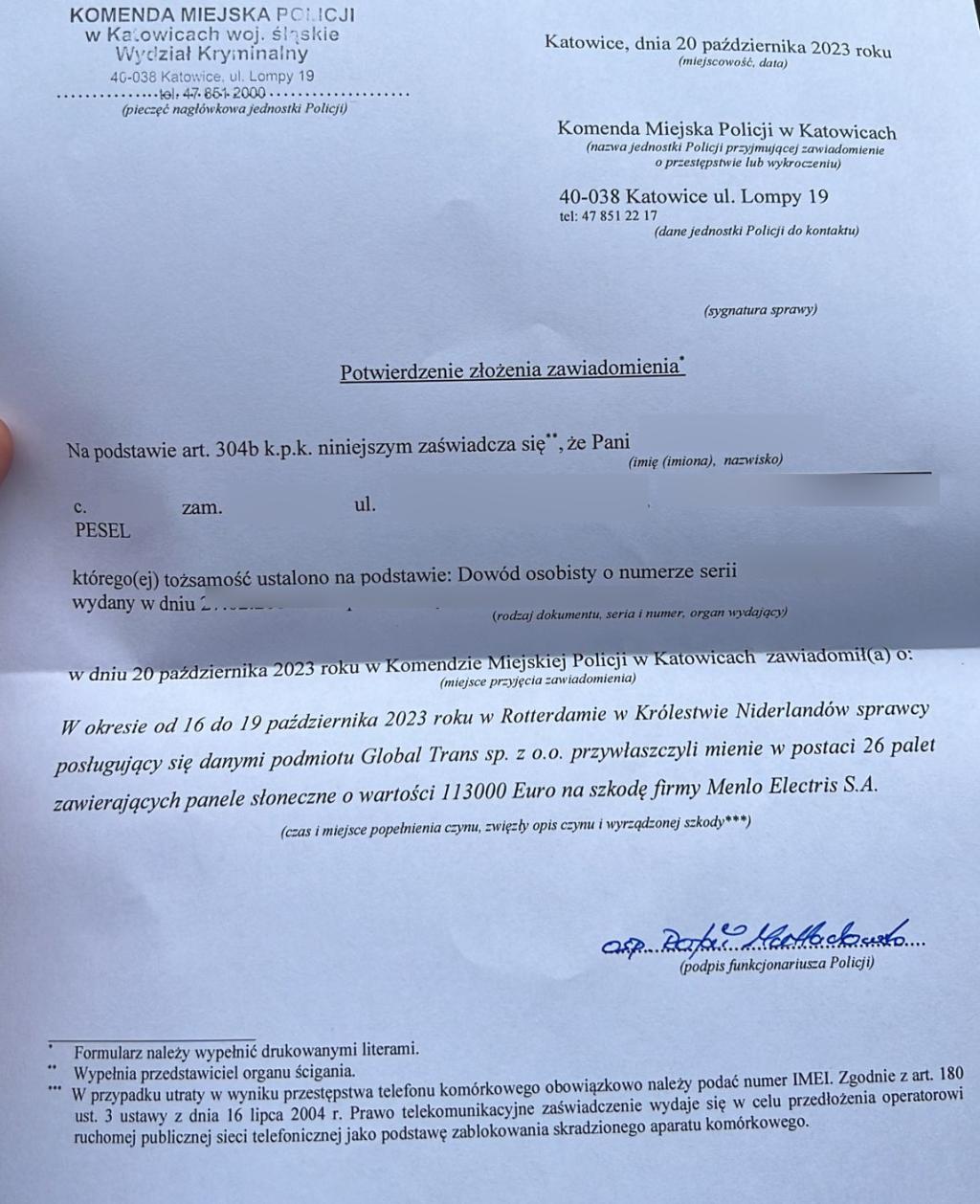 informowaliśmy o niepokojących wydarzeniach związanych z firmą Motiva Solution, która zleciła transport paneli fotowoltaicznych z Rotterdamu do Polski. Teraz, w drugiej części naszego reportażu, pragniemy przedstawić kolejny, niezwykle istotny rozdział w tej historii.
