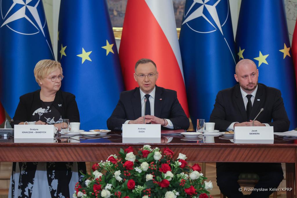 – 2022 rok wprowadził tutaj ogromną zmianę. Zmianę, z której cały czas przez te dwa lata, od czasu rozpoczęcia rosyjskiej agresji na Ukrainę wyciągamy wnioski. Właśnie pod względem strategicznym – i obserwując, i analizując sytuację. Zgadzam się z Panem Premierem, że jest czas dzisiaj na to, aby na podstawie wszystkich tych doświadczeń, i naszej sytuacji przygotować dla Polski nową Strategię Bezpieczeństwa Narodowego – wskazał Andrzej Duda.