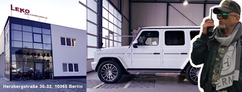 Eben hier wurden die Fotos von dem zum Einkauf angebotenen Mercedes der G – Klasse, Baujahr 2020, Herkunftsland Polen, gemacht und die Werbungsfilme über dieses Auto gedreht.