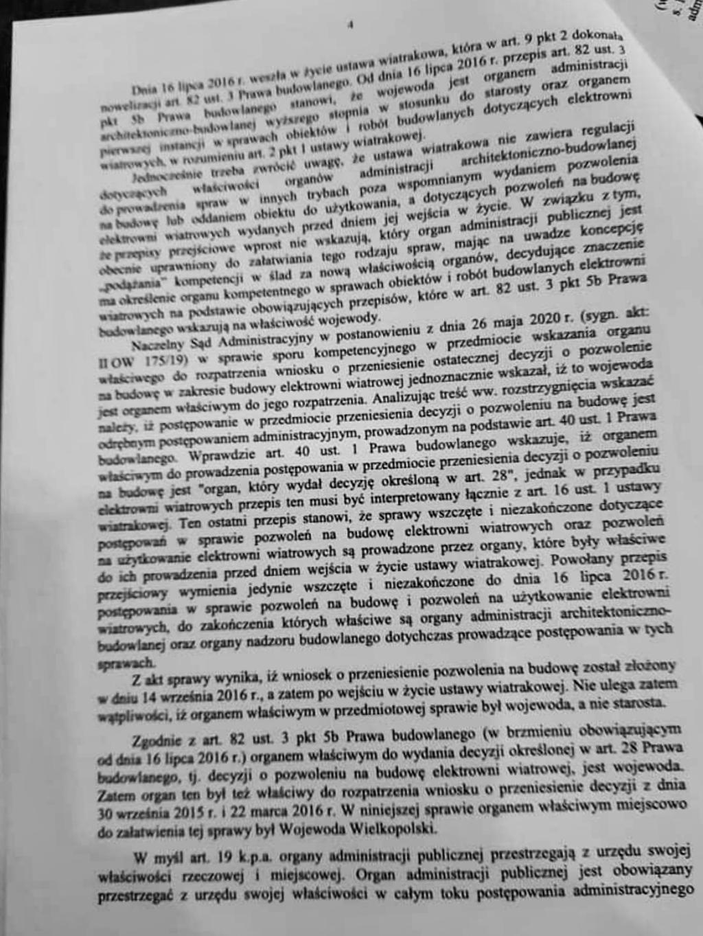 W „Decyzji” dołączonej do niniejszego tekstu czytamy, że starosta Ostrowa Wielkopolskiego nie miał żadnych kompetencji, by w 2016 r. wydać „Pozwolenia na budowę” obecnemu inwestorowi.