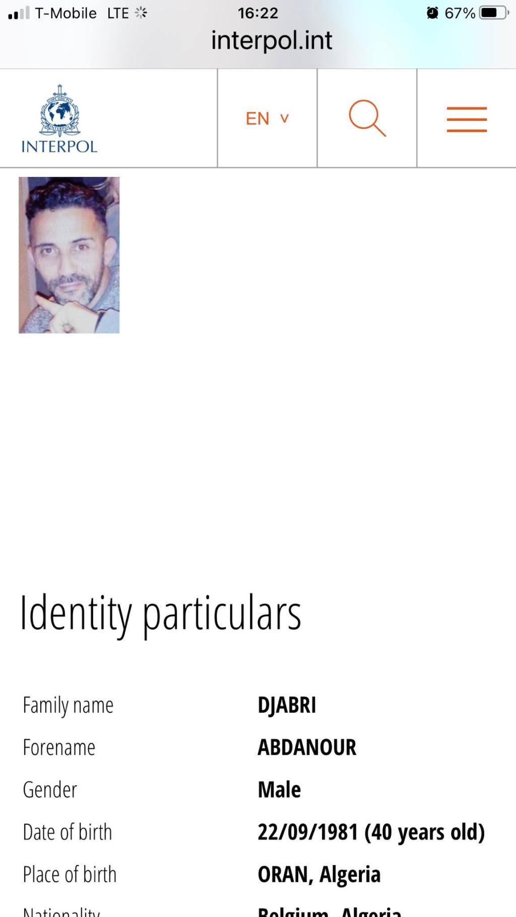 Policja ustaliła jego tożsamość oraz fakt, że urodził się w 1981 roku w Algierii, a ostatnio zamieszkiwał w Belgii.