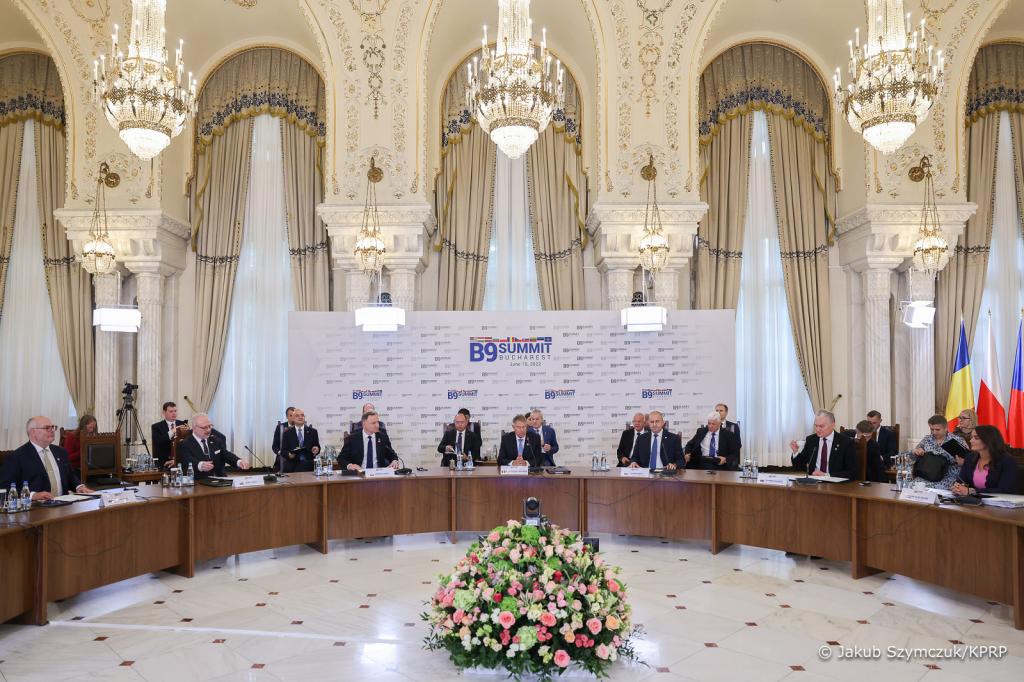 Uczestnicy spotkania państw B9 przyjęli wspólną deklarację, w której potępili niesprowokowaną agresję Rosji na Ukrainę, brutalne pogwałcenie prawa międzynarodowego oraz wyrazili oczekiwanie pociągnięcia do odpowiedzialności winnych zbrodni wojennych. W dokumencie podkreślono także wagę relacji transatlantyckich oraz sojuszniczej determinacji do obrony „każdego skrawka terytorium NATO”. Przywódcy wyrazili również oczekiwanie znacznego wzmocnienia wschodniej flanki NATO i zmiany wysuniętej obecności na wysuniętą obronę.