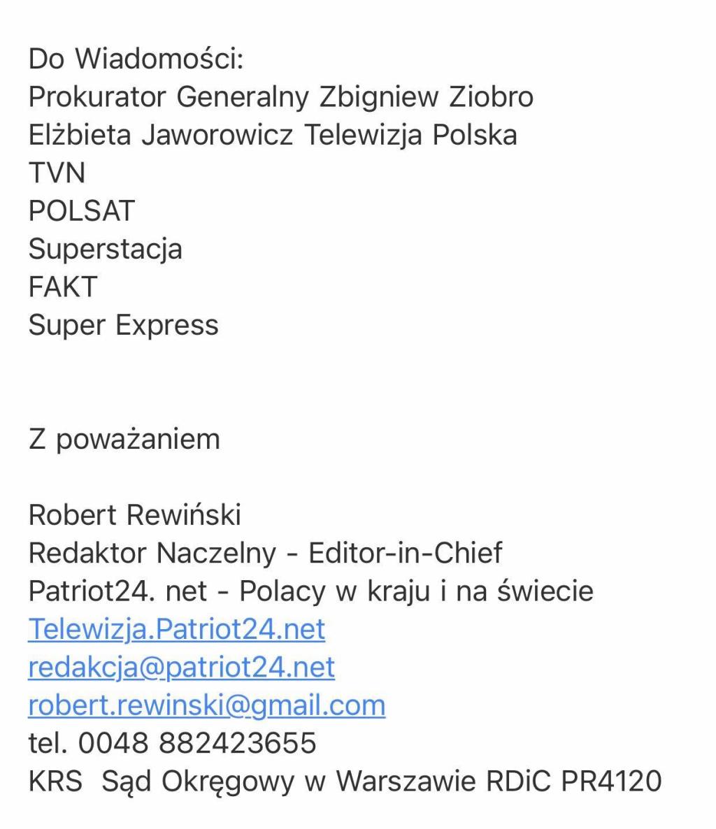 Wszelkie nowe informacje na temat tej sprawy, będziemy przekazywać na bieżąco, również poprzez naszego Facebooka, Twittera, Instagrama, Telegrama, Albicla i naszą stację Telewizja.Patriot24.net