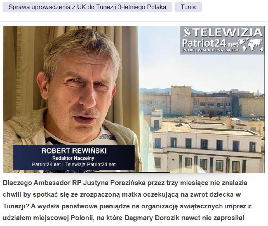 S'il est vrai qu'il y a un policier dans cette famille, alors l'enfant doit être retrouvé rapidement. Il suffit, au sein de la structure du Ministère, de l'arrêter, de l'interroger et d'exiger de lui des informations véridiques sur le sort de l'enfant de 3 ans ! - Robert Rewiński, rédacteur en chef de Patriot24.net et Telewizja.Patriot24.net