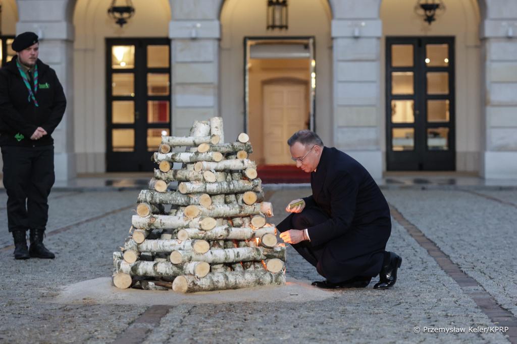 Zgodnie z coroczną tradycją, spotkanie rozpoczęło się od rozpalenia ogniska na dziedzińcu Pałacu Prezydenckiego.