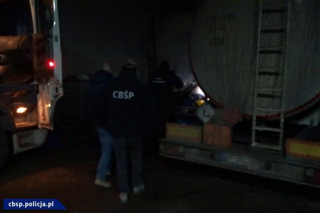 Zatrzymano 9 osób podejrzanych, przeszukano 60 mieszkań, firm i magazynów, zabezpieczono 6 zestawów z cysternami i paliwem w łącznej ilości 180.000 litrów, mnóstwo dokumentacji, a także maszyny i urządzenia służące do blendowania oleju opałowego i prawie milion złotych w gotówce, to efekt akcji przeprowadzonej przez CBŚP i KAS. Zlikwidowano również magazyn, w którym bezprawnie odbarwiano olej opałowy na ogromną skalę. W efekcie przestępczej działalności Skarb Państwa stracił około 20 milionów złotych.