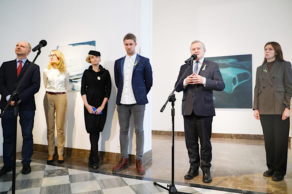 - Oprócz tego, że nasze instytucje kultury tak są niezwykle aktywne w udzielaniu pomocy dla Ukrainy w bardzo wielu wymiarach, działamy także za granicą - bezpośrednio współpracujemy z ukraińskim rządem i walczymy o to, żeby wspomóc obronę Ukrainy – podkreślił podczas wernisażu prof. Piotr Gliński.