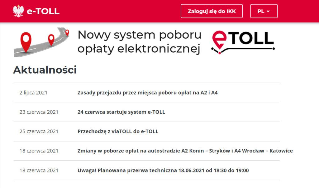 - W okresie wzmożonego wakacyjnego ruchu pojazdów, od piątku od godz. 15.00 do niedzieli do godz. 24.00, wprowadzona zostanie tylko na Placach Poboru Opłat możliwość pobierania na pasach dedykowanych dla użytkowników e-TOLL biletów wjazdowych przez kierowców, którzy nie opłacają jeszcze przejazdów w nowym systemie.